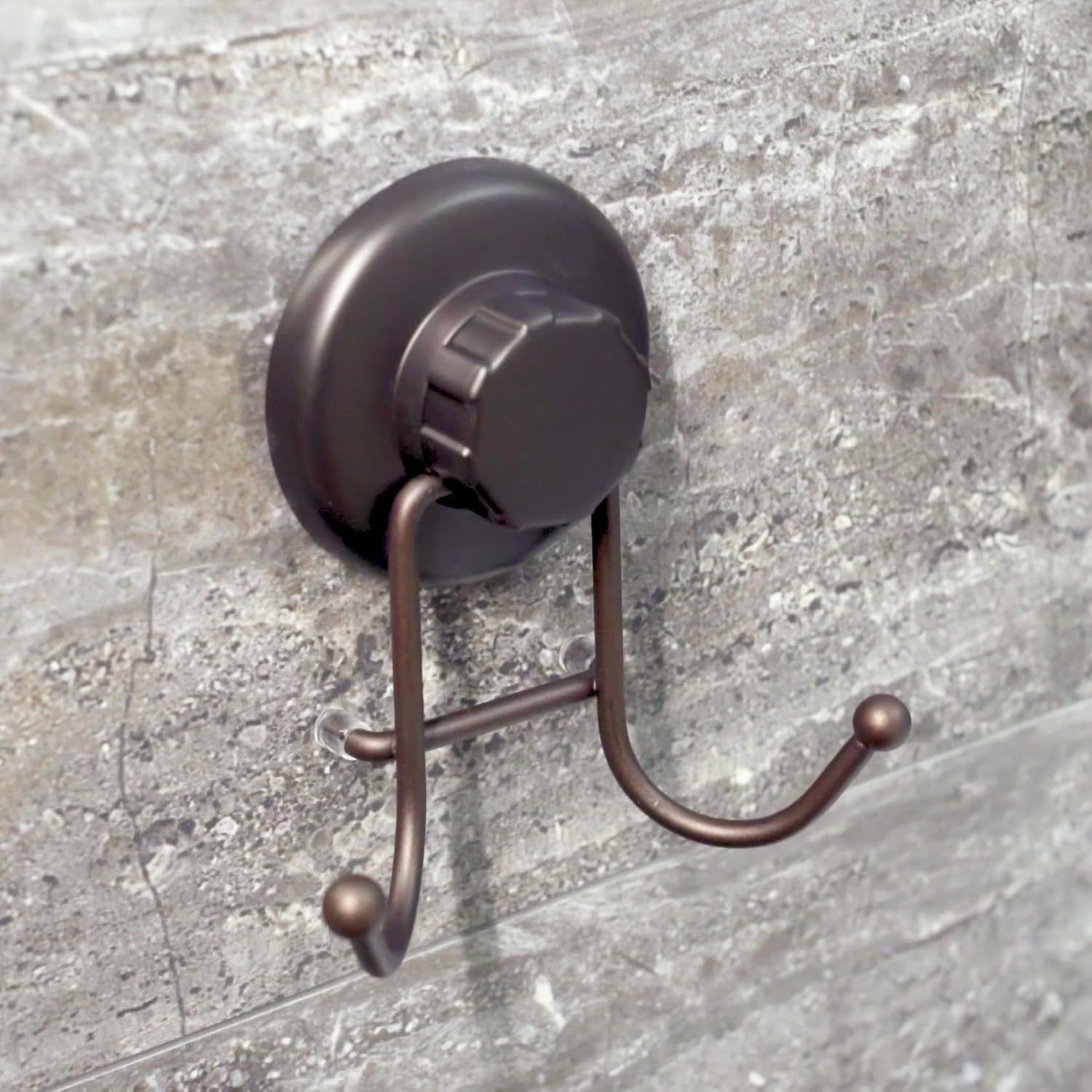 Powerful Vacuum Suction Cup Hooks Heavy Duty Organizer for Towel, Bathrobe and Loofah - Shower Hooks for Bathroom & Kitchen - Adhesive 3M Stick Discs, Bronze (2 Pack)