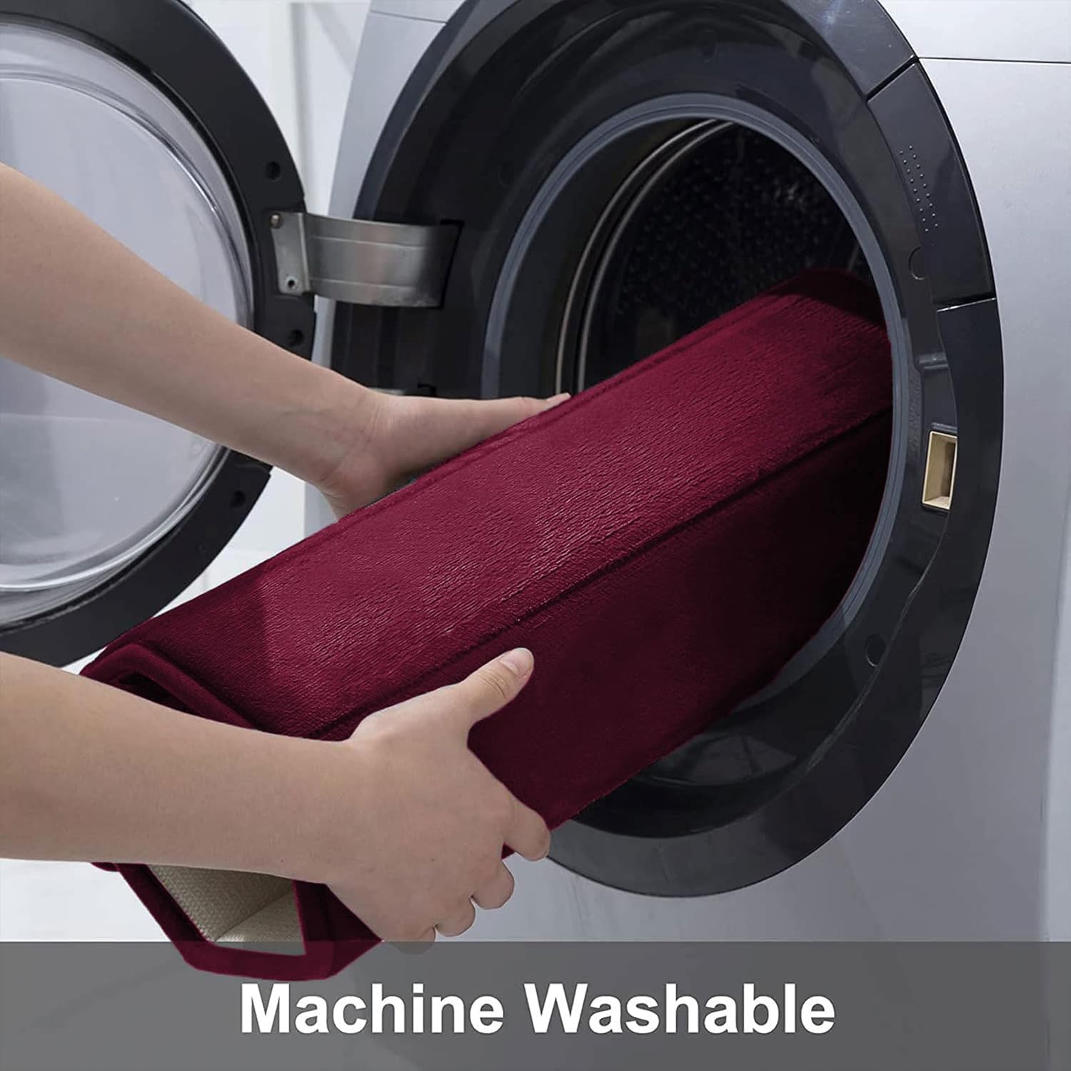 - Remove Creases: Due to the compression packaging, we recommend machine washing and drying the bath mat before use. Our experimental tests have shown that machine washing can effectively reduce creases and help restore the bath mat to its fluffy and soft state