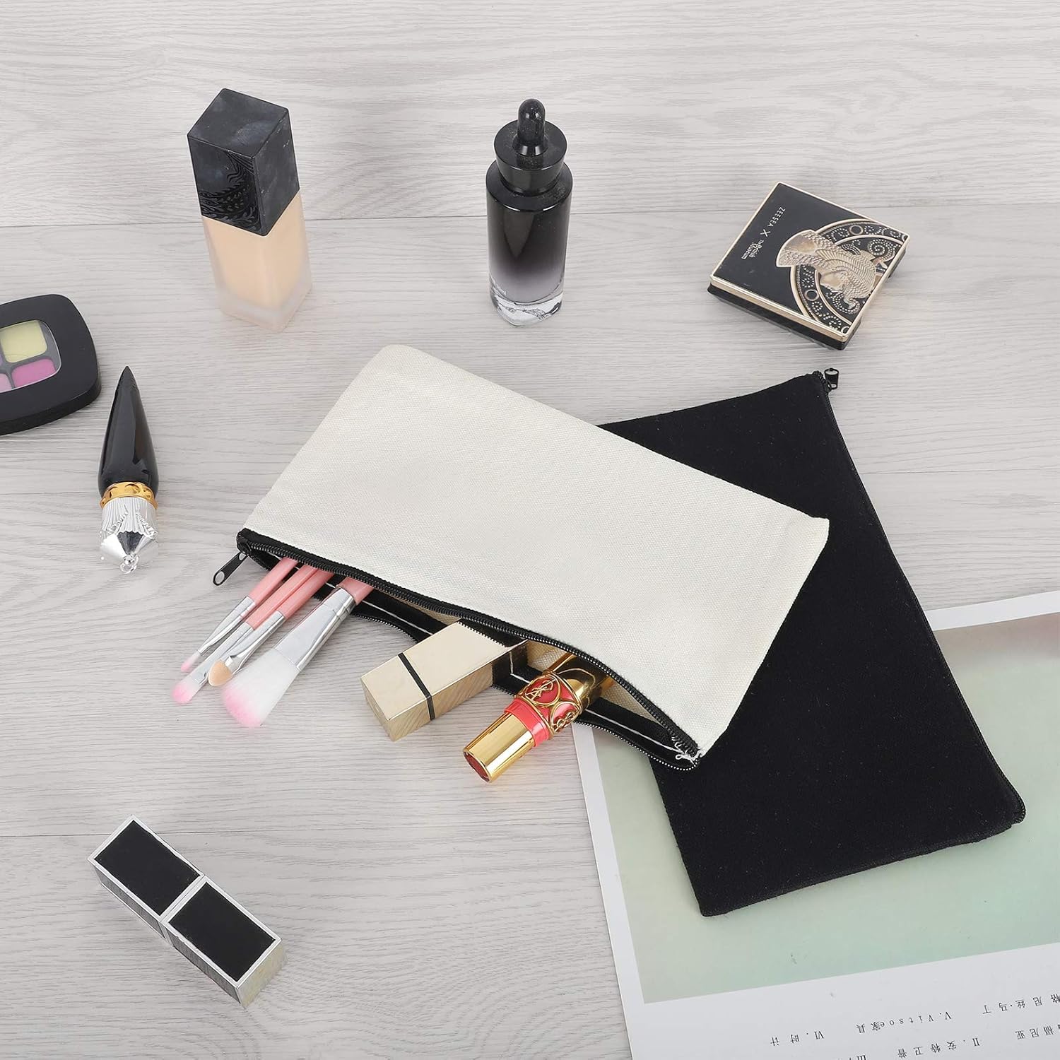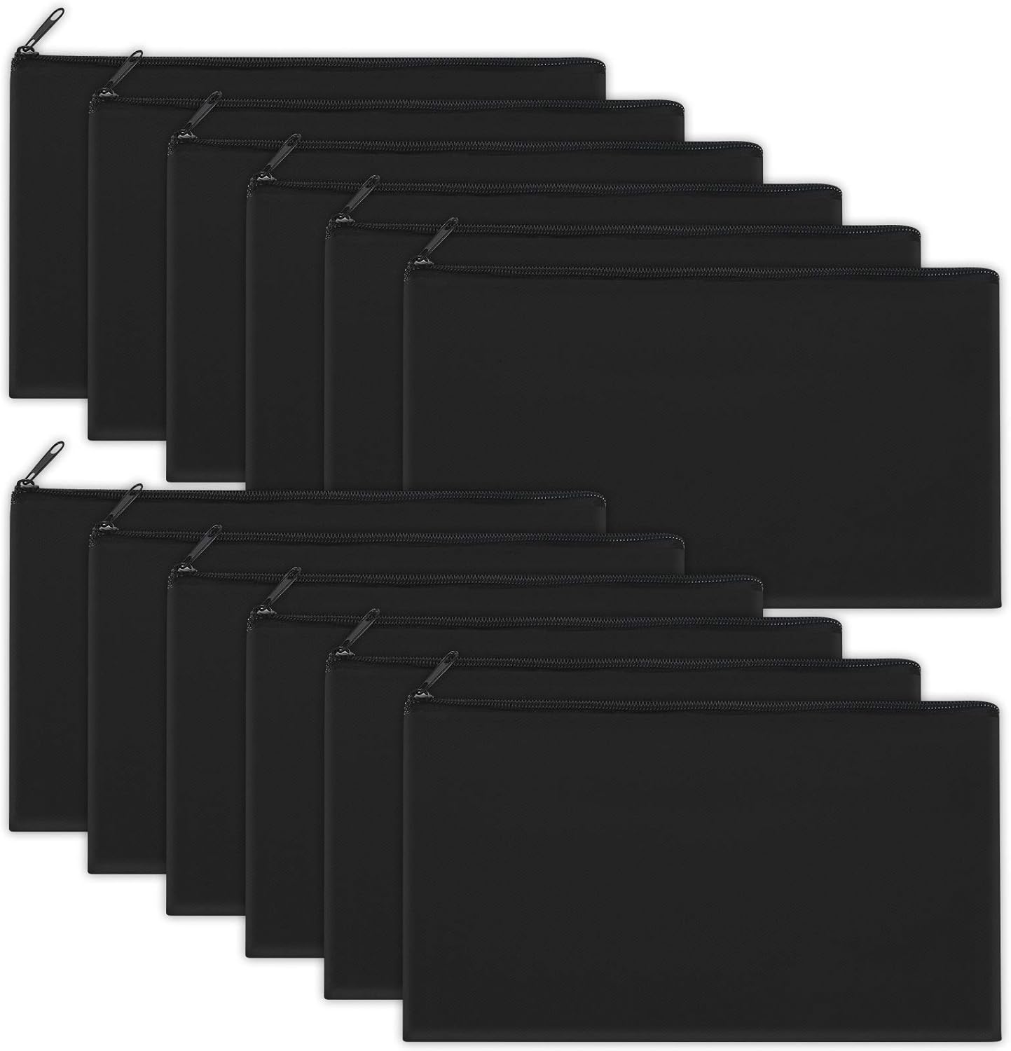 12 Pieces Black Cotton Canvas Makeup Bag, Multipurpose Cosmetic Bag with Zipper Travel Toiletry Pouch, Blank DIY Craft Bag (Black, S)