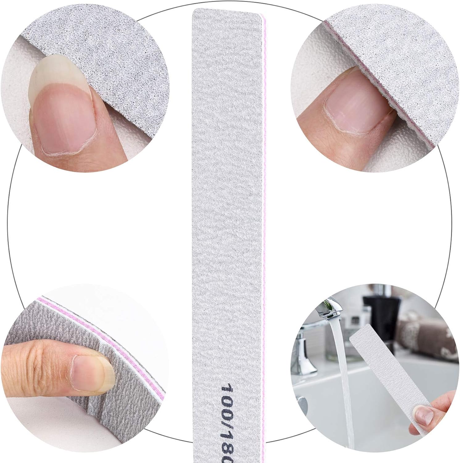 100 Pack Nail Files for Acrylic Nails 100/180 Grit Double Sides Emery Boards Professional Nail Buffering Files