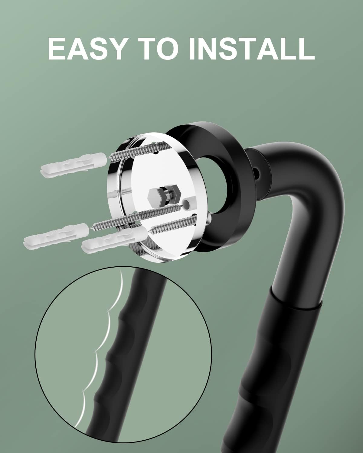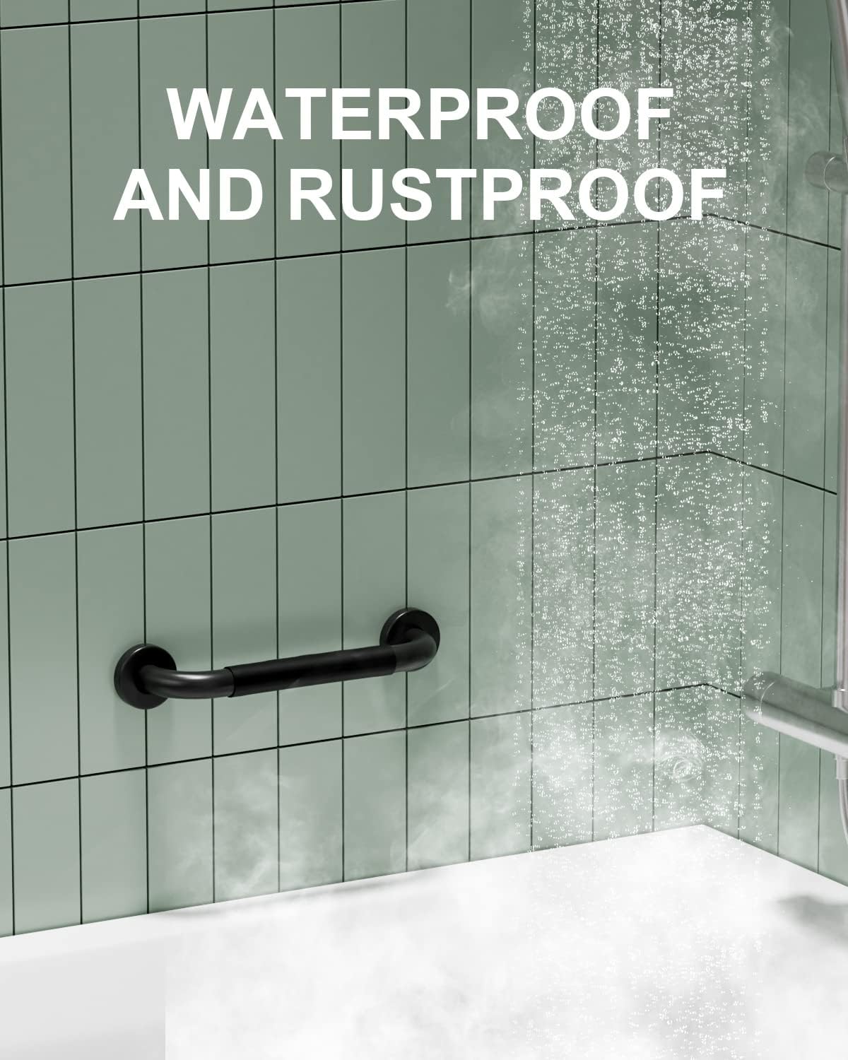 - Munzong 2 Pack 12 Inch Anti Slip Stainless Steel Shower Grab Bar; the non slip oil rubbed black Finish surface with highly textured rubber on middle is superior for safety when you have soapy hands and need to steady yourself