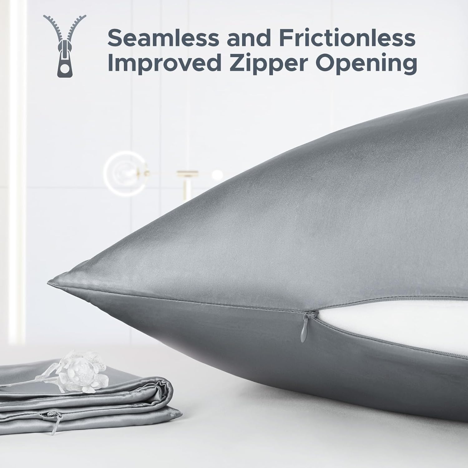 100% Pure Mulberry Silk Pillowcase for Hair and Skin - Allergen Resistant Dual Sides,600 Thread Count Silk Bed Pillow Cases with Hidden Zipper,1pc,King Size,Medium Grey