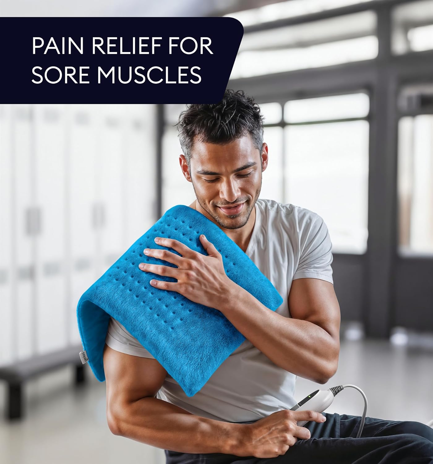 GENIANI Electric Throw - XXL Heating Pad for Back Pain & Menstrual Pain Relief, Auto Shut Off, Machine Washable, Moist Heat Pad for Neck and Shoulder, Cramps Relief, Aqua Blue 18'‘×26’’