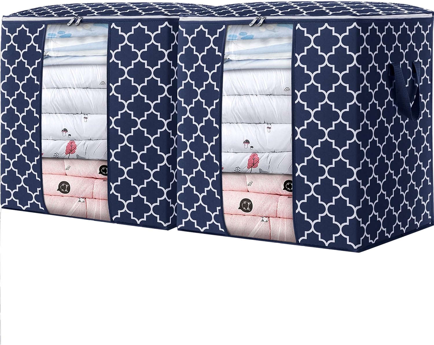 WISELIFE Storage Bags 2 Pack/100L Large Blanket Clothes Organization and Storage Containers for Comforters,Bedding, Foldable Organizer with Reinforced Handle, Clear Window, Sturdy Zippers,Blue