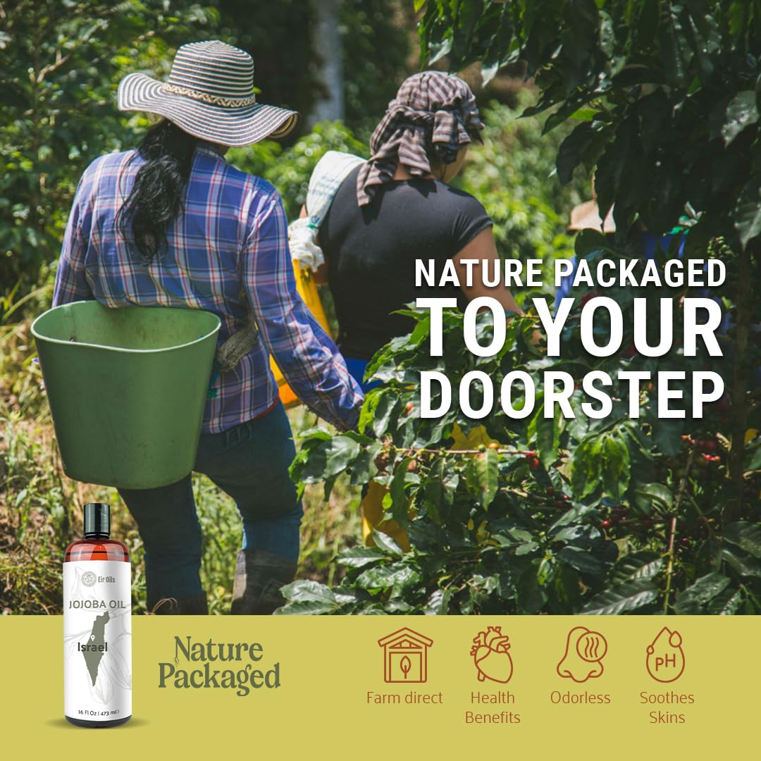 Jojoba Oil - Direct from EIR Oils' Farm in Israel - 100% Pure Carrier Oil for Hair, Face, and Skin - Hand-Picked, Cold-Pressed Carrier Oil (4 Gallons)