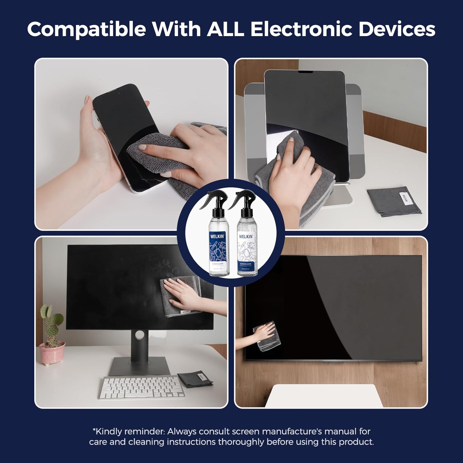 - Streak-Free & Smudge-Free Cleaning: Our gel-based screen cleaner removes fingerprints, dust, and oil without leaving streaks or residue. Perfect for TVs, laptops, tablets, phones, and car screens.