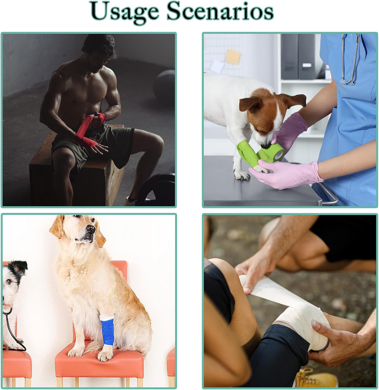 - Multi-purpose: These self-adhesive bandages provide reliable support and protection for various body parts, including ankles, wrists, elbows, knees, and feet. They are perfect for sports activities, wrist and ankle support, or enhancing grip. Additionally, they can be used for dressing pet wounds.