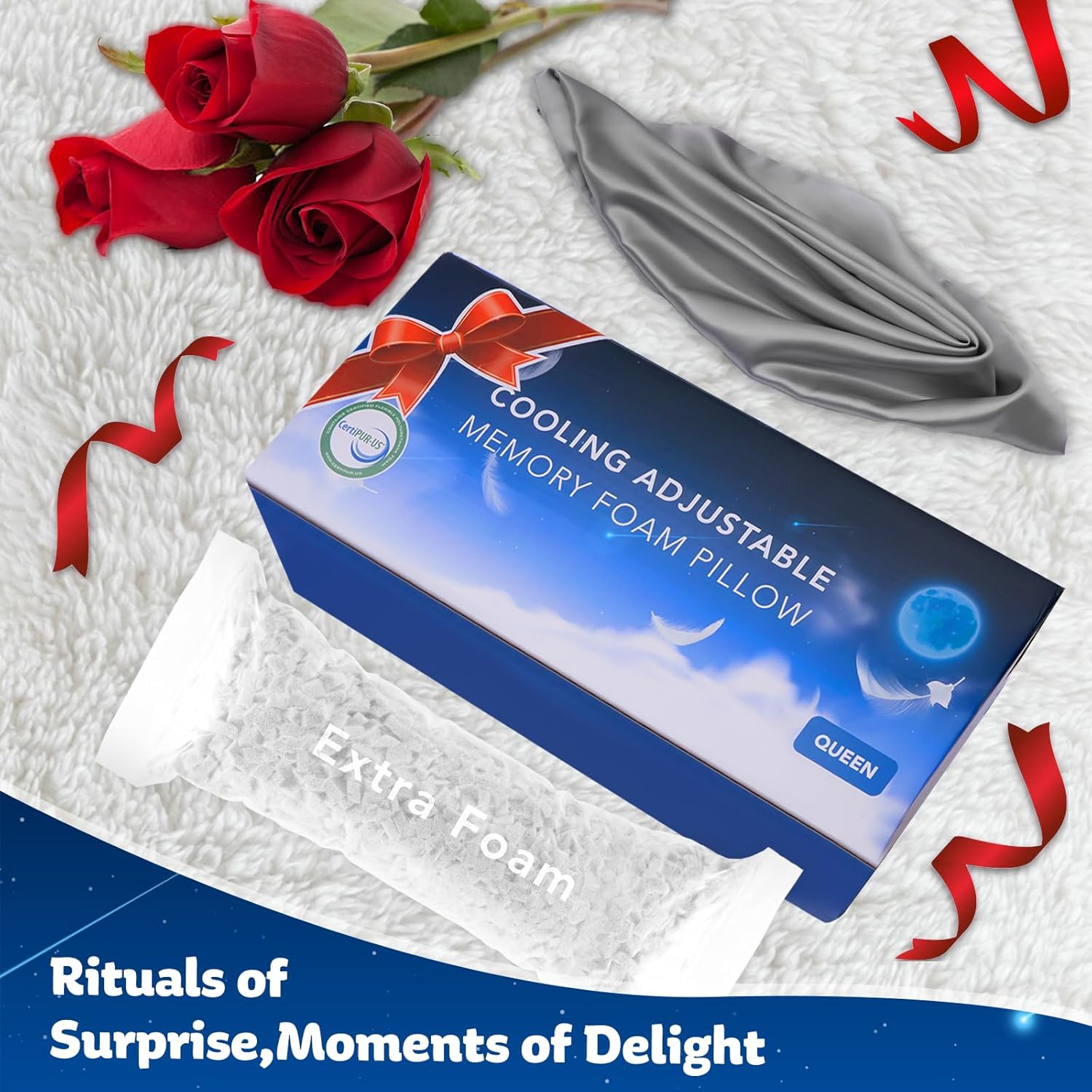 - [BEST LUXURY PILLOW with romantic Stars and Moon pattern] Details make perfect. As soon as receiving our luxury memory foam pillows, you will immediately get the outstanding quality. Instead of other flat no character pillows, it has patent 3D zone inter layer design and enjoys most romantic pattern. The luxury pattern can immediately improve your room decoration level and give you a happy mood everyday. Imagine how sweet and romantic it is to hug stars and moons on your arms every night