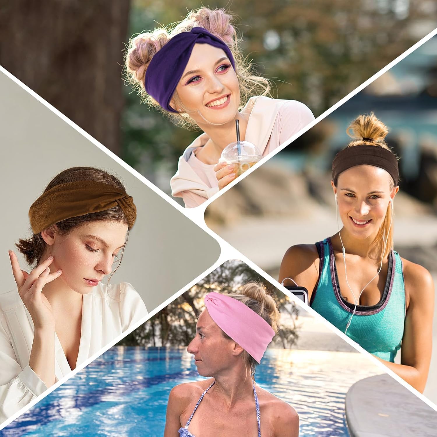 12-Pack Wide Stretch Headbands for Women - Non-Slip Extra Wide Turban Hair Bands for Workout, African Style, Sports & Daily Use (Breathable, All-Day Comfort) Color1 (Color2)