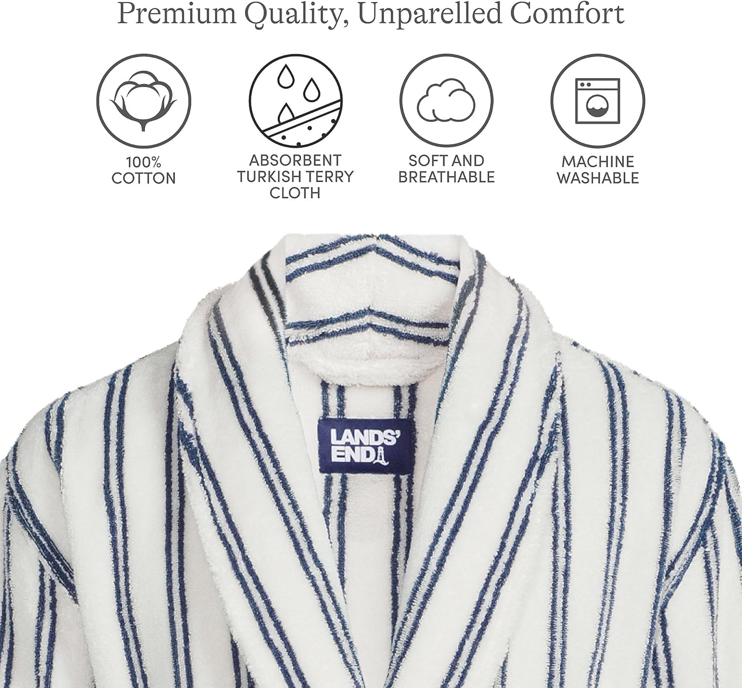 Lands' End Men's Calf Length Turkish Cotton Terry Bathrobe