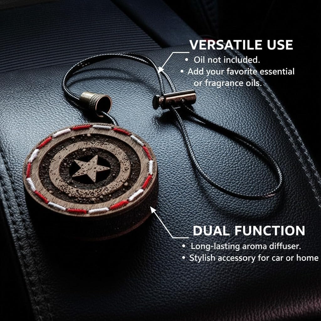 Wood Car Air Freshener — Captain Shield Handmade Unscented DIY Essential Oil Hanging Diffuser with Felt Insert — Add Your Own Oils — Refillable — Car/Truck/SUV — Cardboard Box