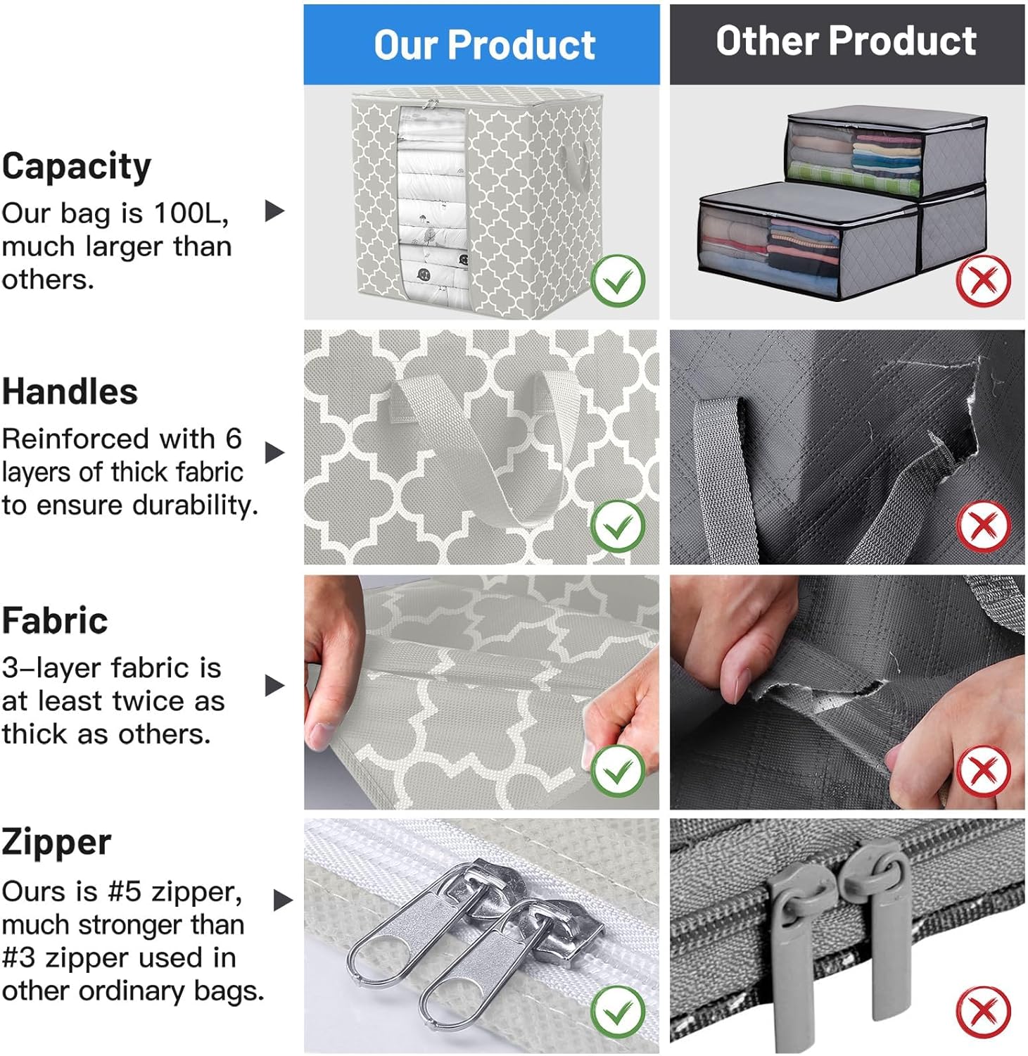 - Large Capacity: Each storage bag measures 20.5βx 20.5β x 14.6β / 52 x 52 x 37 cm , with 100L capacity; The organizer is spacious to store your comforters, pillows, bedding, blankets, plush toys, sweaters, out of season clothing or any other soft items;