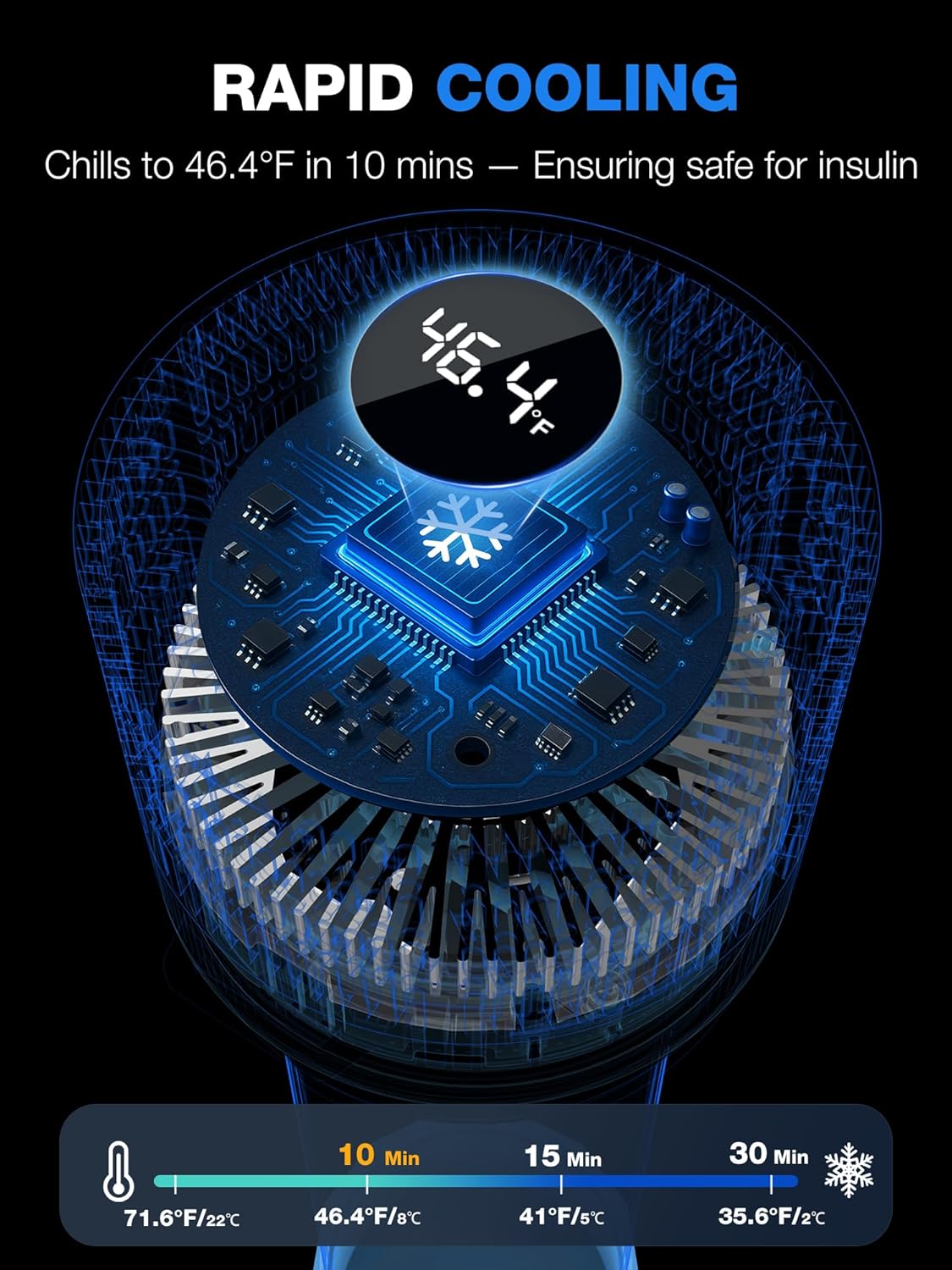 - ❄️ USB Charge & Rapid Cooling - Equipped with upgraded electric chiller, it can quickly cool down to 46.4℉ in 10 minutes without insulin freezing. USB charging, no matter you are in the car, plane, train, or at the computer, power bank, car lighter, the travel medicine case can work stably.
