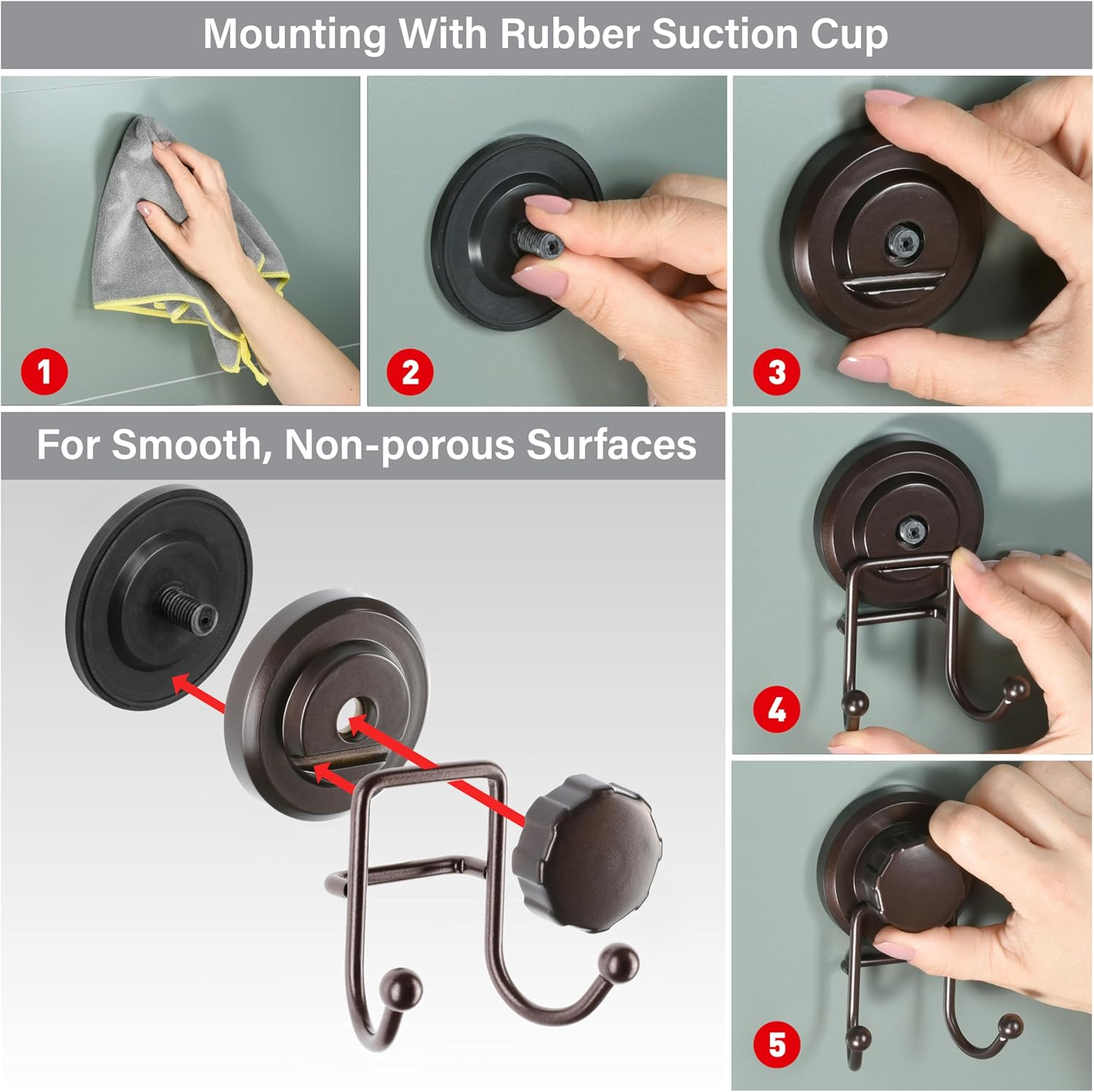 HASKO Suction Cup Hooks for Shower Wall, Removable Towel Hooks for bathrooms, Includes Optional No Drill Adhesive Mount for Inside Shower, Rustproof Stainless Steel - 2 Pack, Bronze